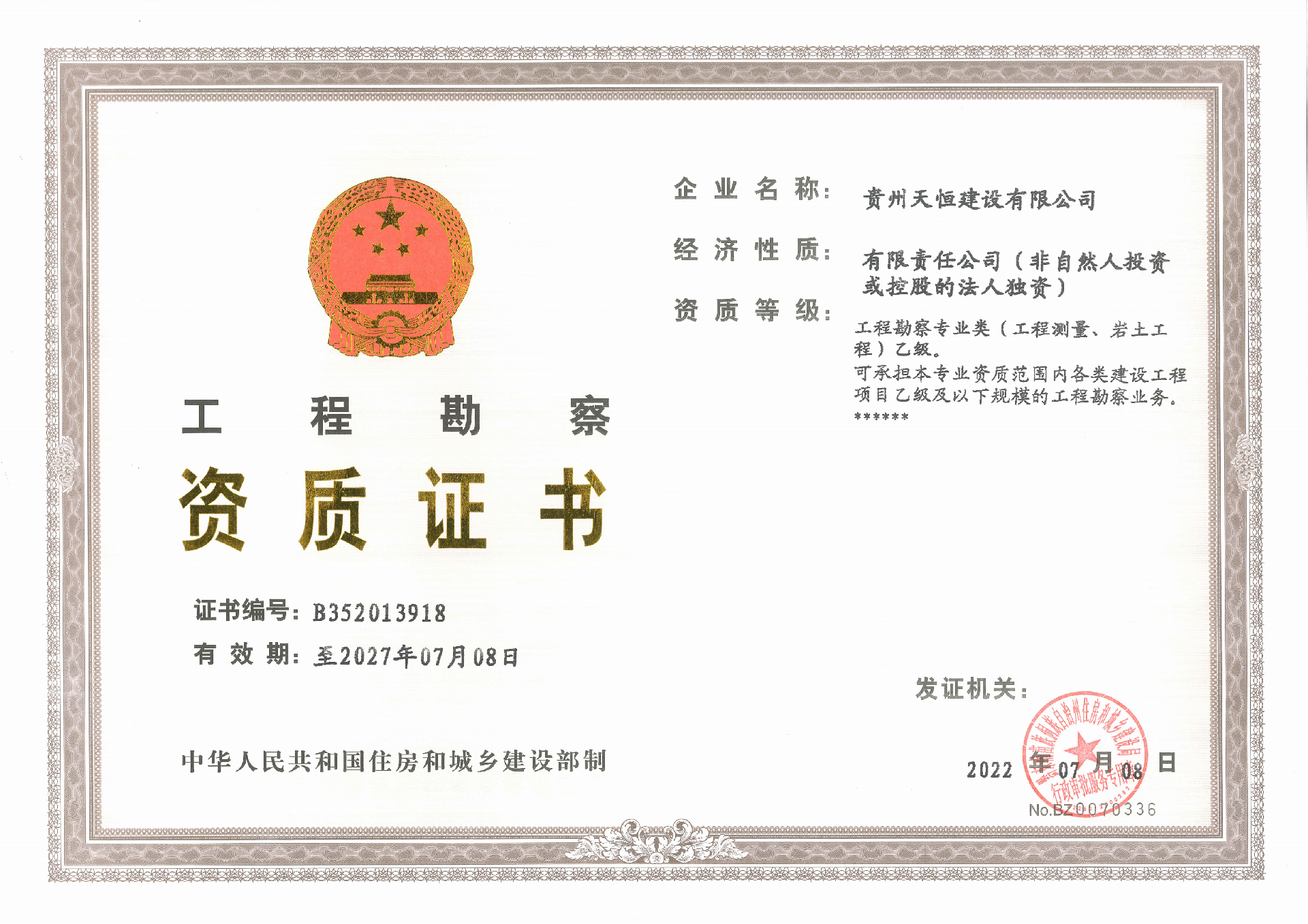 勘察資質B352013918: